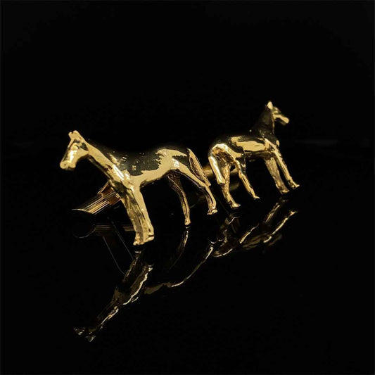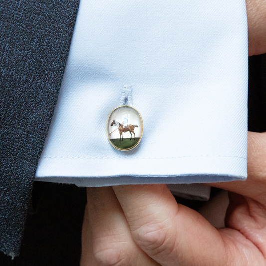 18ct Yellow Gold Essex Crystal Polo Player And Horse Cufflinks