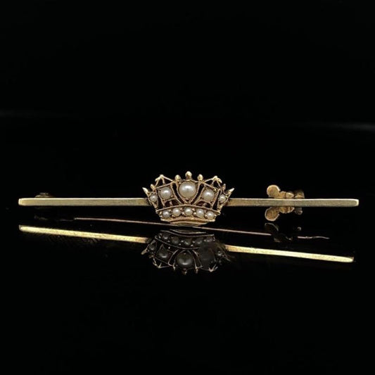 Pearl Set Yellow Gold Naval Crown Brooch
