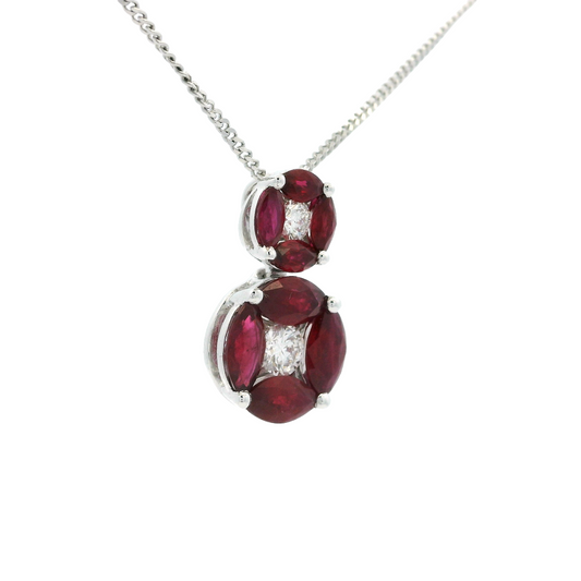 1.50ct Marquise Ruby and Diamond Double Clusters Pendant