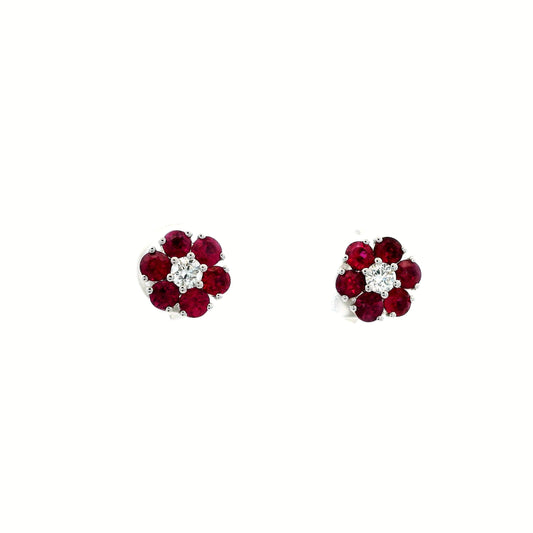 0.96ct Round Ruby and Diamond Flower Cluster Earrings