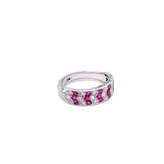 Art Deco Calibre Ruby and Round Diamond Eternity Ring
