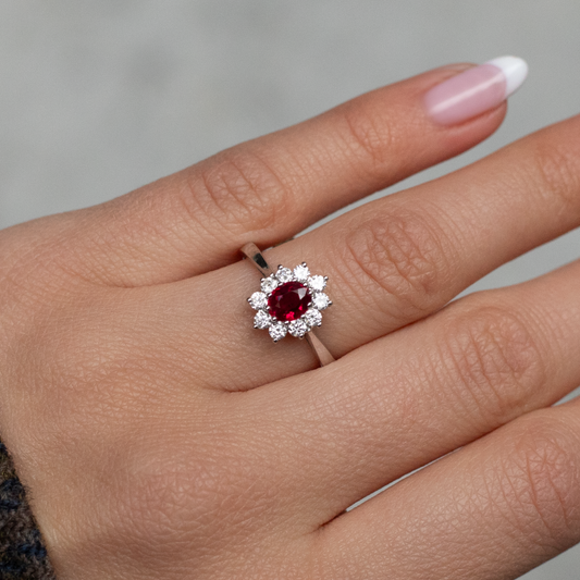 0.73ct Oval Ruby And Diamond Cluster Ring