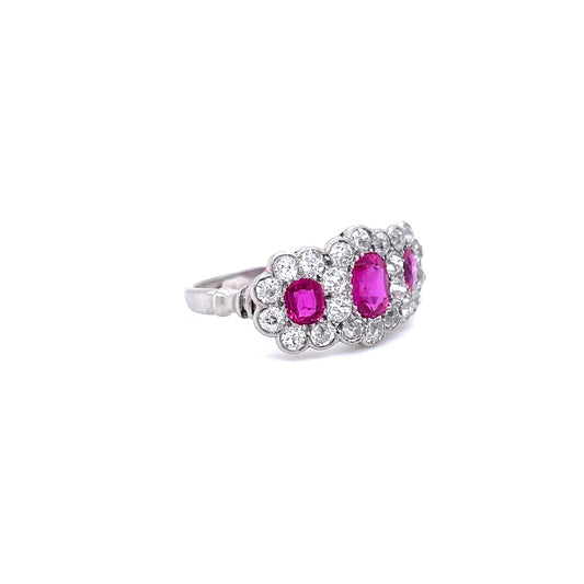 0.90ct Oval Ruby and Round Diamond Triple Cluster Dress Ring