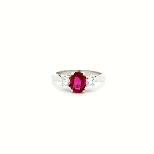 1.10ct Oval Ruby and Diamond Three Stone Cluster Ring