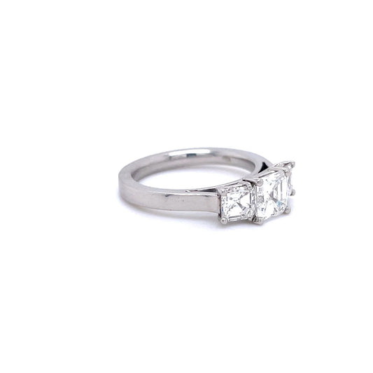 1.01ct GIA Certified Central Asscher Cut Diamond Three Stone Ring