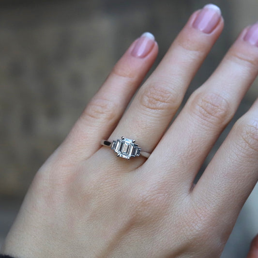 0.82ct Certified Emerald Cut Diamond Five Stone Art Deco Style Ring