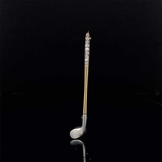 Diamond Set Yellow Gold and Platinum Golf Club Brooch