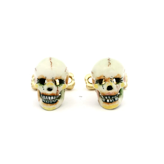Deakin & Francis Yellow Gold And Enamel Skull Cufflinks