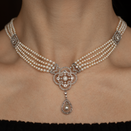 Antique Pearl And Diamond Drop Necklace