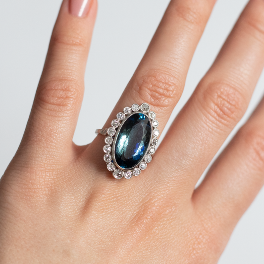 6.75ct Oval Aquamarine and Diamond Fancy Cluster Cocktail Ring