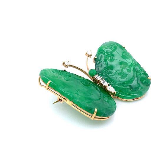 Jade And Diamond Butterfly Brooch