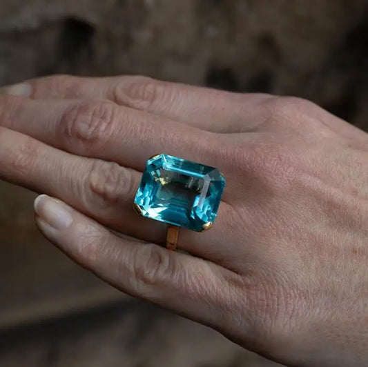 35.88ct Emerald Cut Aquamarine Solitaire Ring