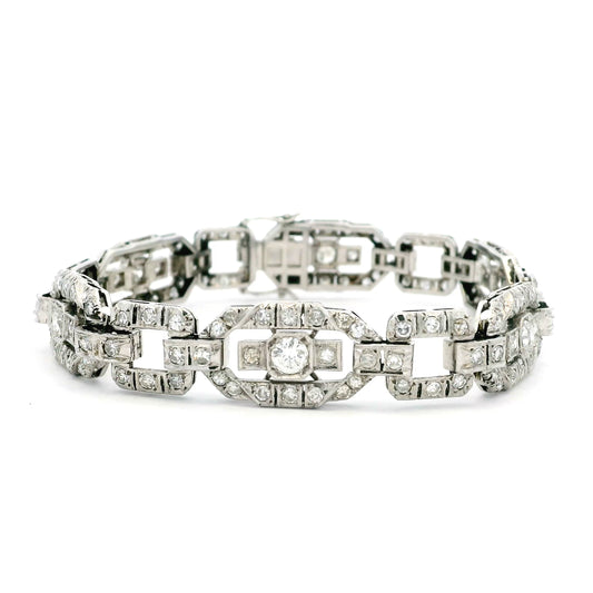 Art Deco Old Cut Diamond Plaque Bracelet
