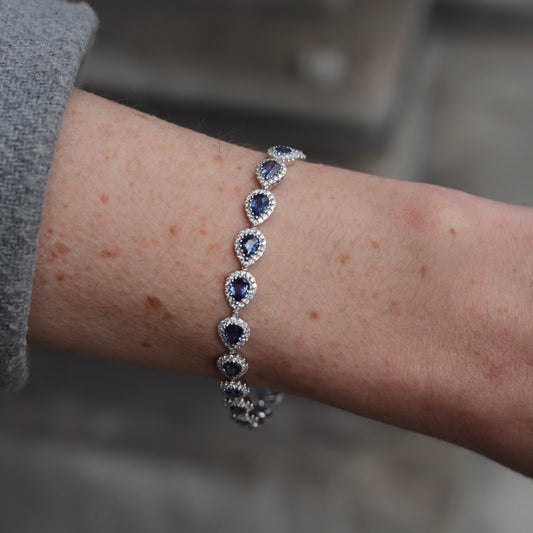 7ct Pear Cut Sapphire And Round Diamond Clusters Bracelet