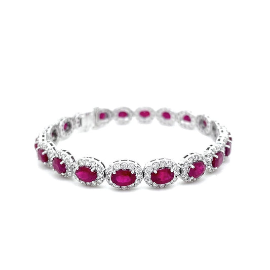 12.61ct Oval Ruby And Diamond Clusters Bracelet