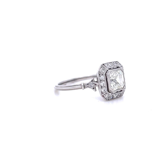 1.29ct Asscher Cut Diamond Art Deco Style Cluster Ring