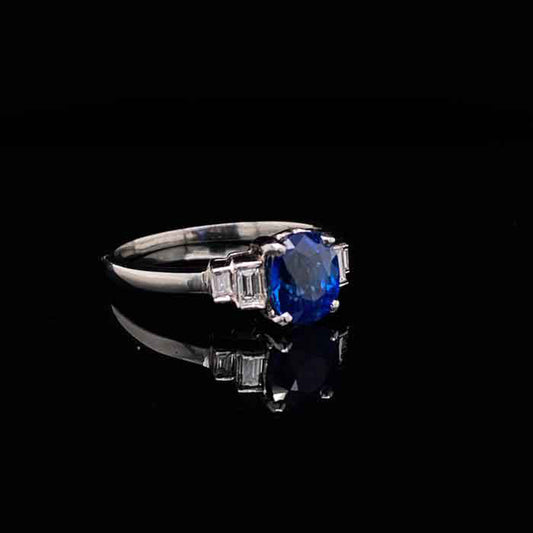 1.95ct Oval Cut Sapphire And Baguette Cut Diamond Three Stone Ring