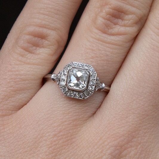 0.62ct Old Cut Cushion Diamond Cluster Ring