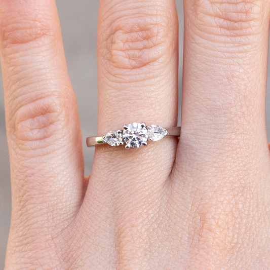 0.40ct Certified Round Diamond And Pear Cut Diamond Three Stone Ring