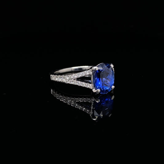 2.08ct Oval Sapphire Solitaire Ring With Diamond Set Split Shoulders