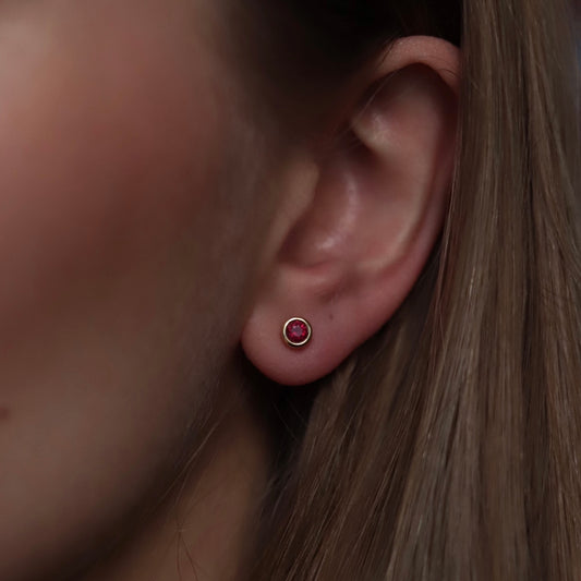 18ct Yellow Gold 0.46ct Round Ruby Solitaire Earrings