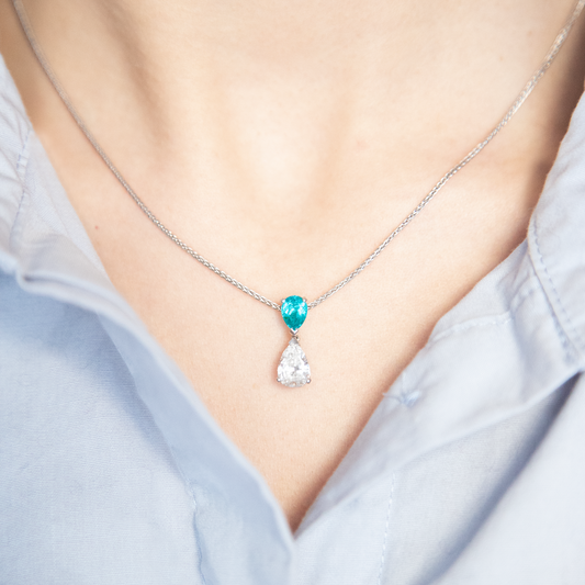 Pear On Pear Paraiba Tourmaline and Diamond Pendant