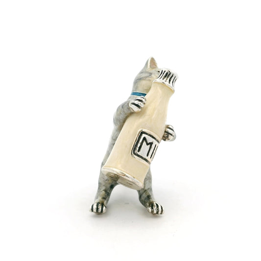 Silver And Enamel Kitten Drinking From Milk Bottle