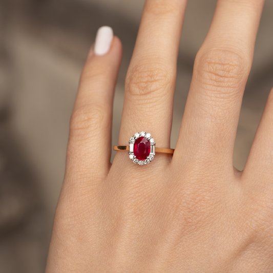 1.06ct Oval Ruby And Diamond Cluster Ring