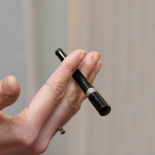 Art Deco Black Jadeite And Diamond Cigarette Holder