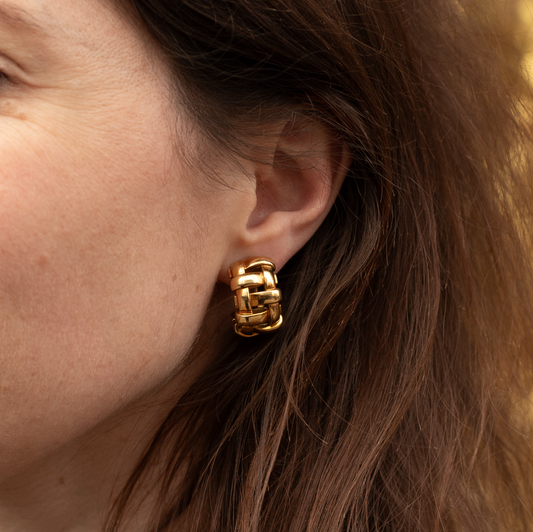 Tiffany & Co Yellow Gold Basket Weave Hoop Earrings