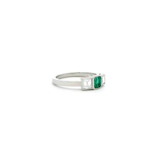 0.40ct Square Emerald And Square Diamond Three Stone Ring
