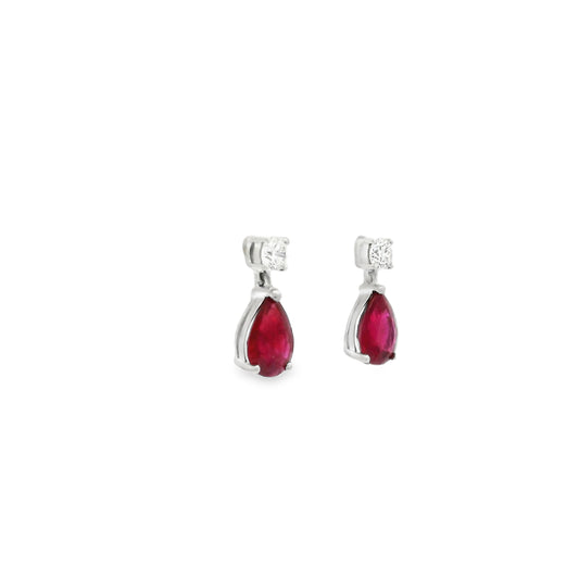 1.61ct Pear Ruby And Round Diamond Drop Earrings