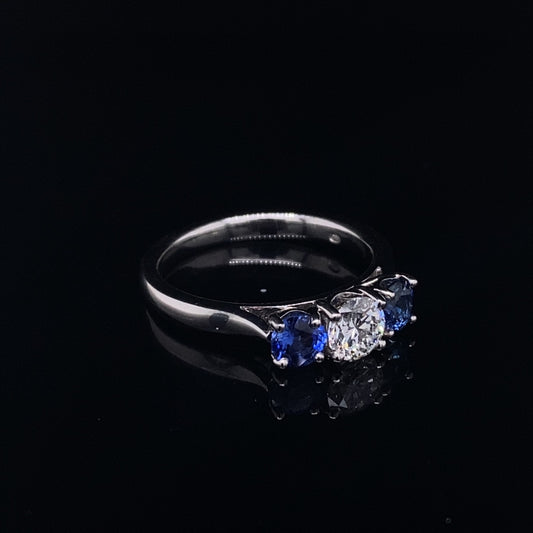 0.69ct Round Sapphire And Diamond Three Stone Ring