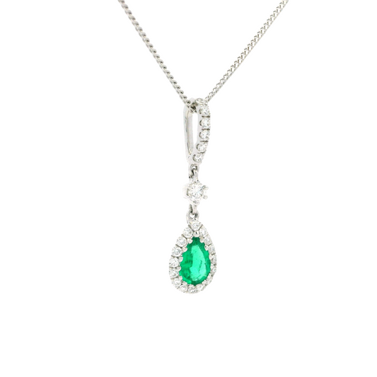 0.33ct Pear Cut Emerald and Diamond Cluster Pendant