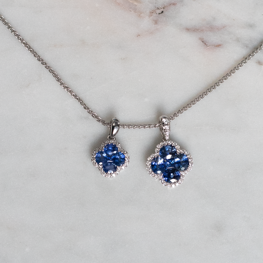 Square And Oval Cut Sapphire And Diamond Qautrefoil Cluster Pendant