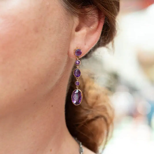 Victorian 10.94ct Amethyst Line Drop Earrings