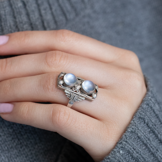 Silver Cabochon Moonstone Ring