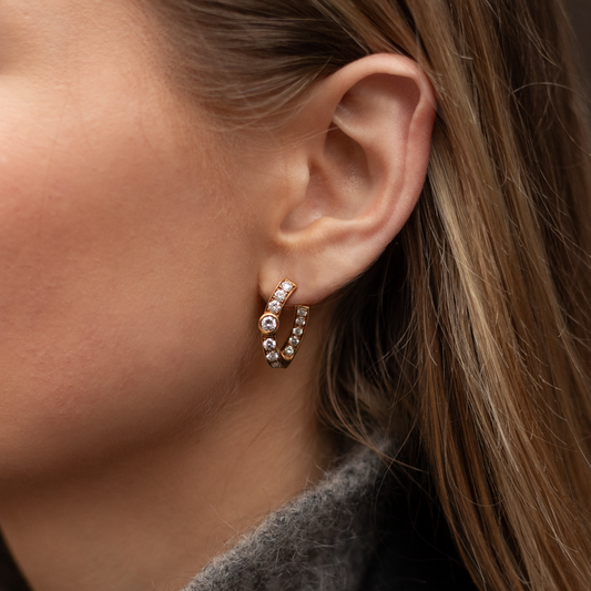 Vintage Garrard & Co Yellow Gold Diamond Hoop Earrings