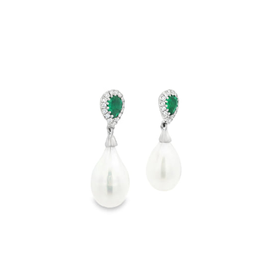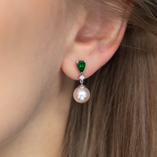 Pearl, Tsavorite Garnet And Diamond Drop Earrings