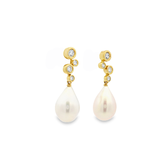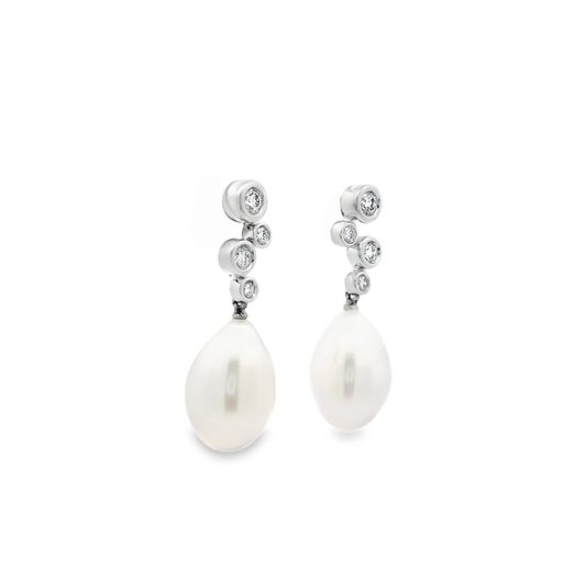 0.33ct Diamond Bubble And Pear Shape Pearl Drop Earrings
