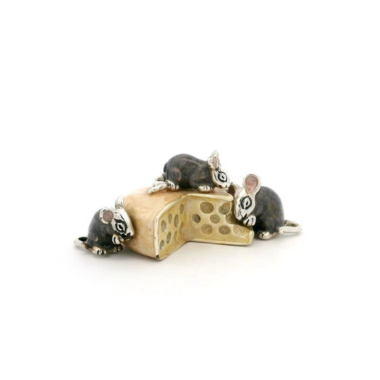 Silver And Enamel Mice Eating Cheese
