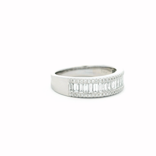 0.72ct Emerald Cut And Round Diamond Half Eternity Ring