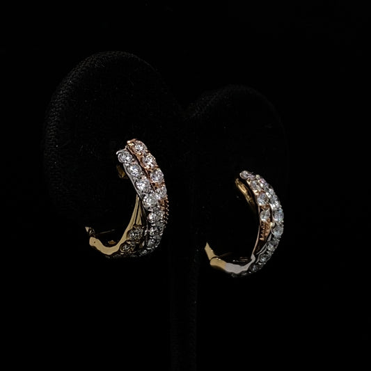 18ct White, Yellow and Rose Diamond Set Gold Cross Over Hoops