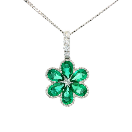 1.04ct Pear Cut Emerald Flower Pendant