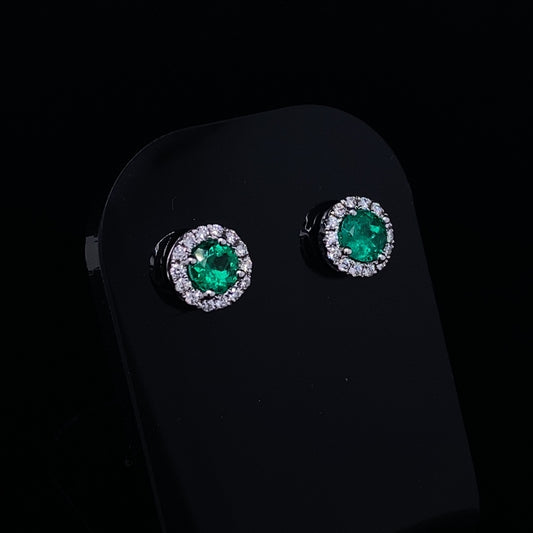 0.50ct Round Emerald And Diamond Cluster Stud Earrings