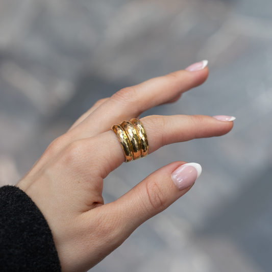 Yellow Gold Hammered Three Row Ring