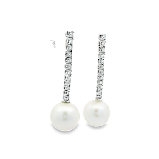 Diamond Line And Pearl Drop Earrings