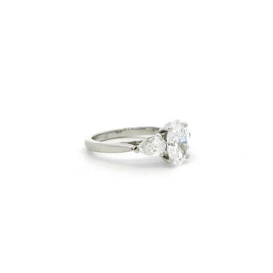 1.55ct Certified Oval Diamond And Pear Cut Diamond Three Stone Ring
