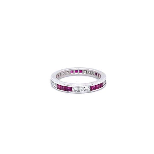 Art Deco Calibre Ruby and Round Diamond Eternity Ring