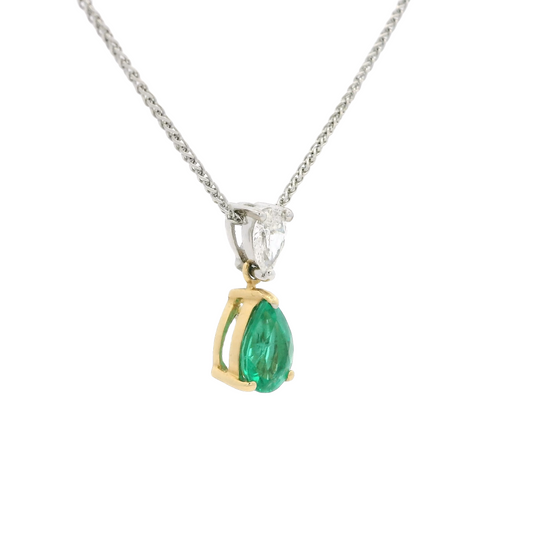 0.96ct Pear Cut Emerald And Diamond Pendant